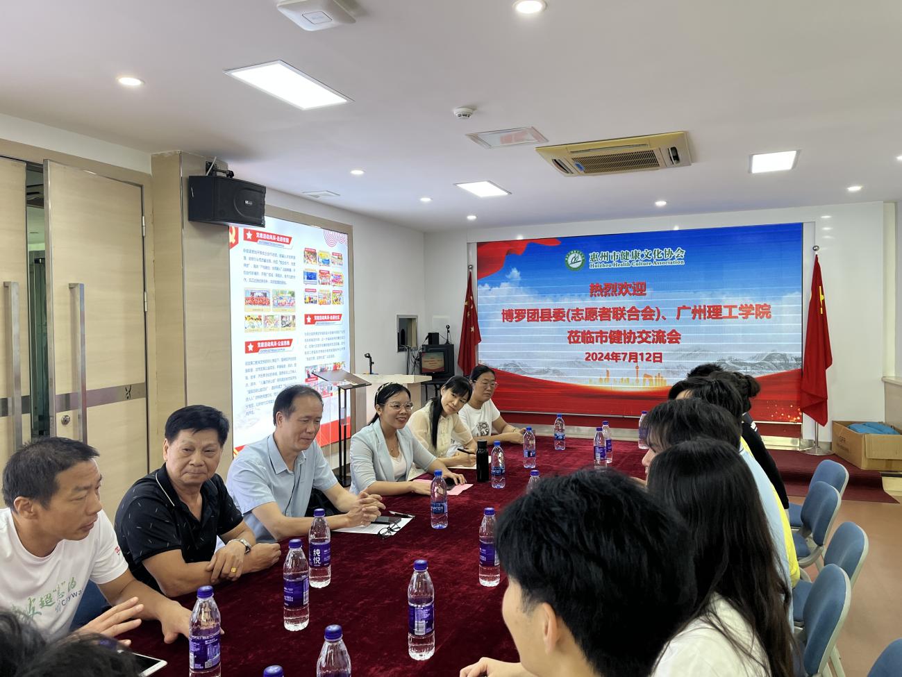 (胡明清)7月12日上午,博罗团县委负责人兼博罗志愿者联合会秘书长邹荣俊引领广州理工学院“艺无界,创未来”突击队师生一行10人,莅临惠州市健康文化协会进行交流访问。此次访问旨在促进校地合作,共同探讨大健康行业与人工智能领域的融合发展新路径。惠州市健康文化协会执行会长张伟芳、副秘书长韦秀娟等领导成员热情接待,并在协会会议室举行深入的座谈会,共计19人参加此次活动。