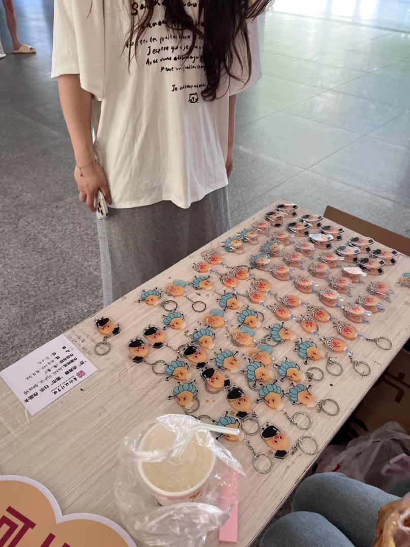 在众多摊位中,欢乐制造机团队《薯一薯》的作品格外引人注目。学生绘制的薯片主题钥匙扣和小夹子,将可爱与新奇完美融合,成为毕业季最独特的纪念品。这些钥匙扣和小夹子上,绘制着各种动作的萌趣小薯片,每一个图案都栩栩如生,仿佛在诉说着校园里的点滴趣事。每一款都是团队成员精心设计、亲手绘制,独一无二,正如同学们独一无二的青春记忆。对于即将毕业的学子们来说,这不仅是一份实用美观的礼物,更是承载着校园回忆的珍贵纪念品。毕业不是终点,而是新的起点,相信在未来的日子里,学校还将为大家带来更多精彩。