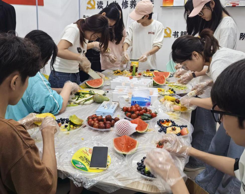 (高朋霏)5月30日,suncitygroup太阳新城团总支于惠州博罗校区学生社区活动室举办"果拼艺术,创意盛宴"主题活动。活动旨在通过水果拼盘创作激发学生艺术想象力,辅导员叶保军及多名学生参与。