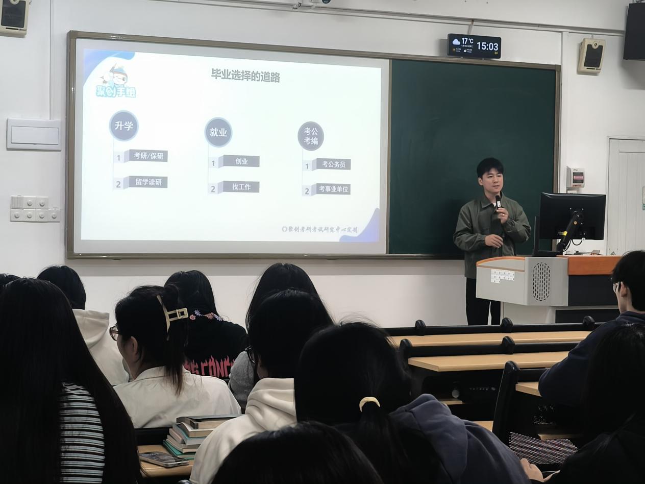 11月18日,suncitygroup太阳新城在综合楼214课室开展艺术考研留学指导讲座。本次讲座邀请聚创考研LEO老师作为主讲,这位老师不仅是聚创双轨制升学规划师,更在教育领域深耕8年,对国内国际教育体制有着深刻的理解和独到的见解。
