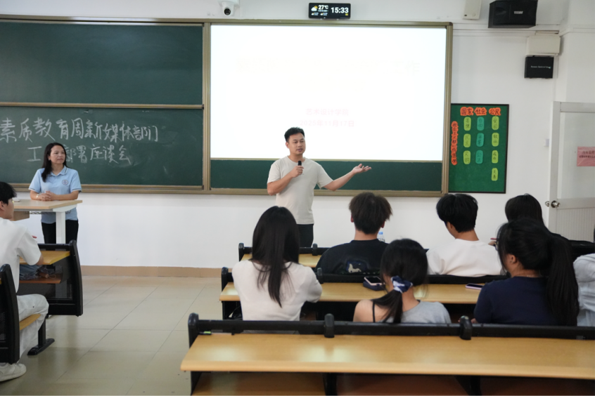然后由陈剑君老师总结工作情况。强调要充分发挥新媒体矩阵优势,通过推文、短视频、小红书等多元形式,展现学院素质教育的特色与成效。他强调,宣传工作对于提升学院形象、扩大社会影响力具有重要意义,包括微信公众号粉丝量的快速增长、短视频平台的高热度内容输出以及学院形象在网络空间的显著提升,通过生动直观的形式展现学院素质教育成果与学生精神风貌,为素质教育周营造积极向上的传播氛围。