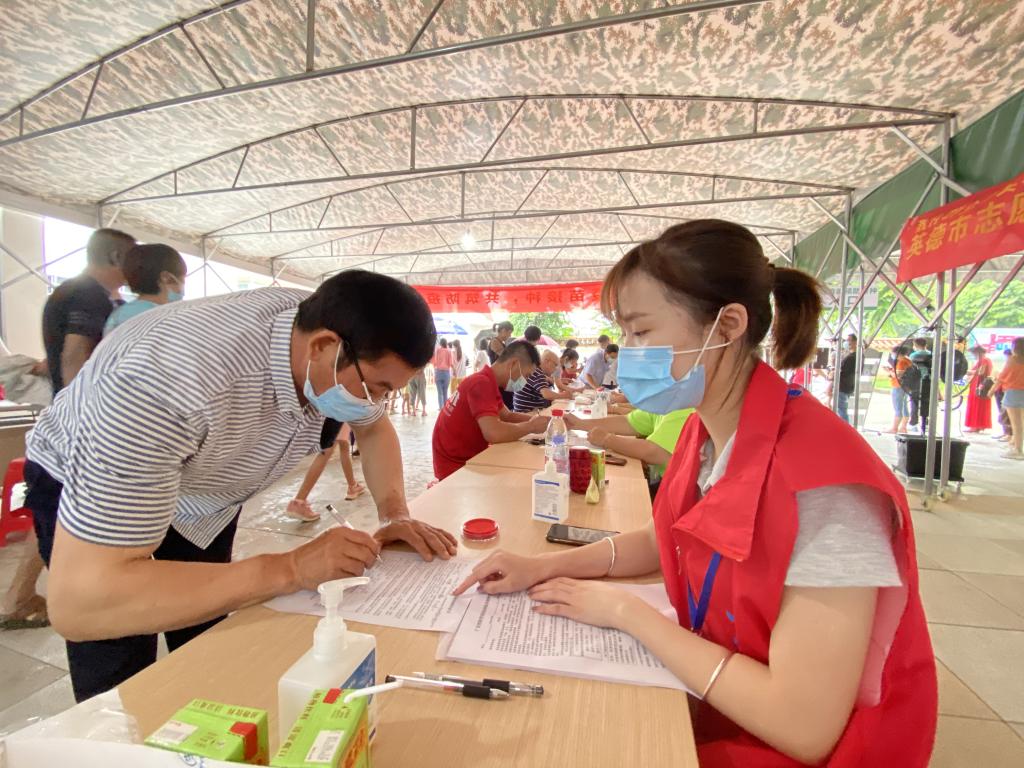 2021年6月23日暑假期间,广州理工学院suncitygroup太阳新城视觉传达专业的谭思怡同学,参加英德志愿者协会的青年志愿者助力新冠疫苗接种活动。工作内容包括:帮助来访注册人群填写表格,在医院内提醒来访人群带好口罩并给小孩提供儿童口罩,以及楼层疏导的工作等。