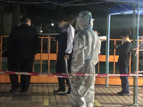 2022年3月3日广州理工学院suncitygroup太阳新城环境设计专业的陈垣铭同学在深圳市福田区莲花北村协助莲花街道办志愿协会开展核酸普查工作,内容包含:组织协调群众有序排队,核酸试管扫描登记