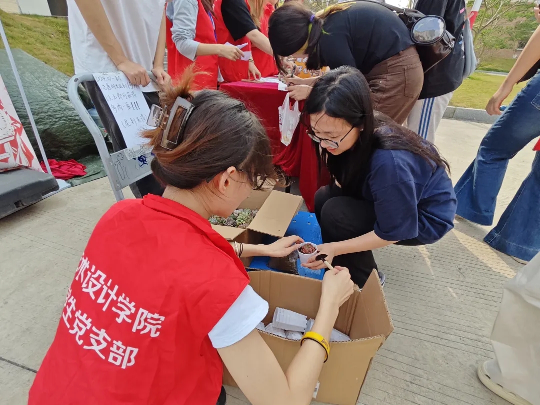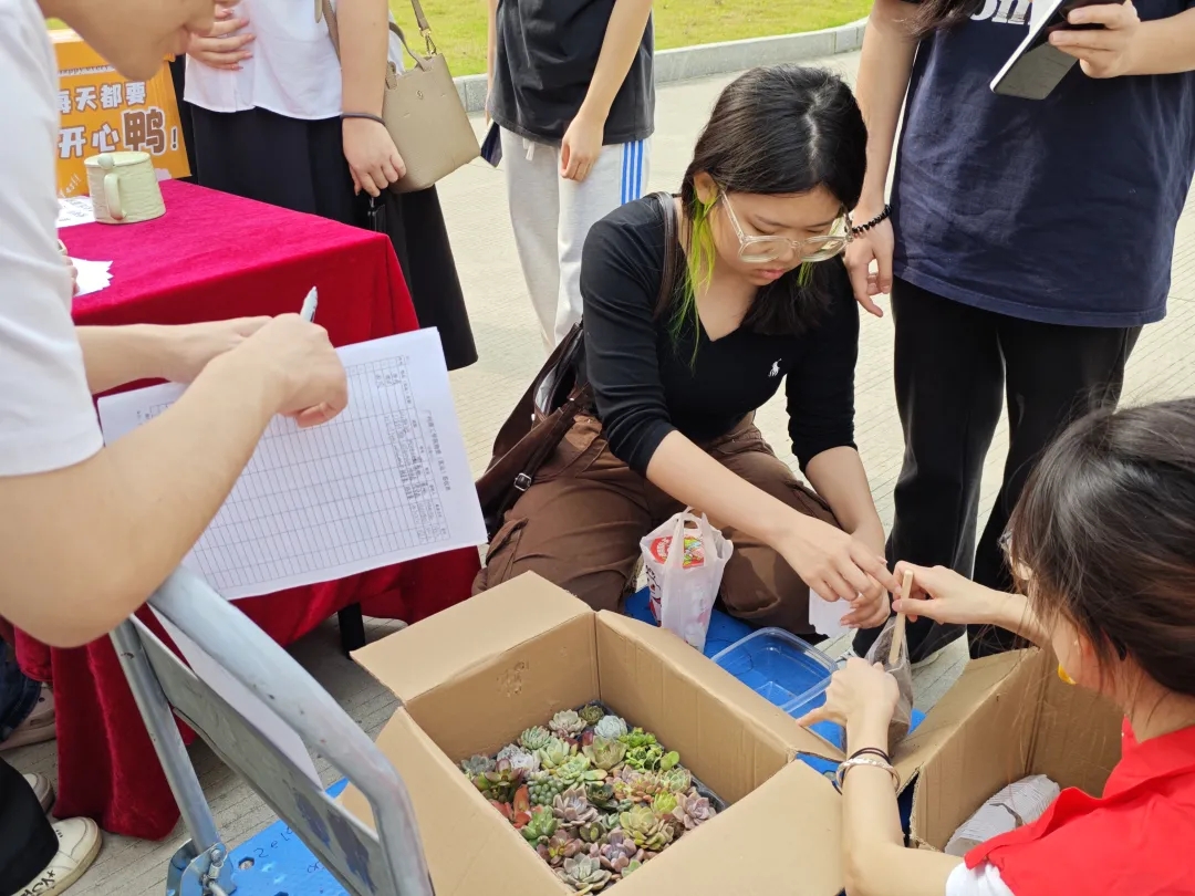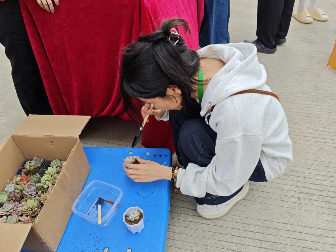活动现场精心设置三大特色板块,构建起立体化的精神传承空间。"志愿时换多肉绿意"创意摊位前,学生们手持志愿服务时长记录卡,有序兑换形态各异的多肉植物。这场"精神财富"与"绿色生机"的奇妙转化,不仅让环保理念生根发芽,更让奉献精神化作可触可感的生命礼赞。