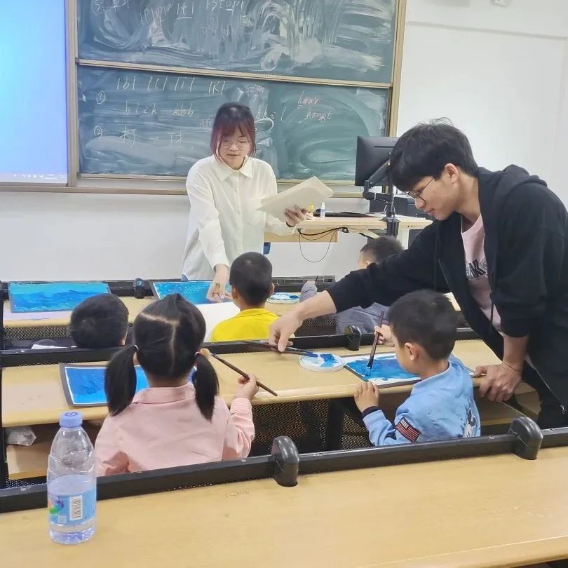 绘画小班以《海底世界》为主题进行绘画创作。海水治愈而温暖,小老师们带着孩子们走进海底的奇妙世界,了解小鱼的特征特点,学习水草的画法。教授孩子们用撕纸和水粉结合的小技巧,来创作出别样风格的海底世界画作。