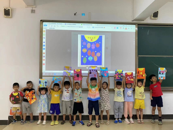 绘画小班课以“中秋佳节”为主题,课堂上老师讲解中秋节相关的故事与知识,通过观察灯笼、月亮的图片,让孩子们对造型绘画物的特征有初步认识,培养他们观察能力。以绘画和剪贴结合的方式进行创作,剪纸过程锻炼孩子们动手能力,剪贴创作方式基础上展开大胆的想象,对画面背景进行装饰丰富作品的层次感。