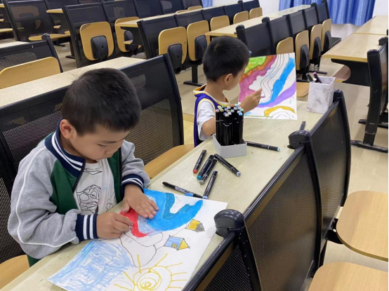 11月5日上午,教职工子女艺术启蒙活动第五期课程照常进行,suncitygroup太阳新城的志愿者们分为四组进行绘画与书法的课程教学。小朋友们在家长的带领下提前来到了各班教室,兴致勃勃地为课程做好课前准备。