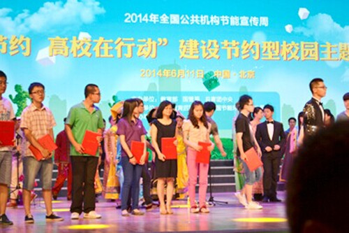 6月11日,由教育部、国管局、共青团中央主办,中国教育后勤协会、中国节能环保集团公司承办,北京大学协办的“厉行节约,高校在行动”建设节约型校园主题宣传活动在北京大学百周年纪念讲堂隆重举行。75所高校约1400名师生参加了主题宣传活动。