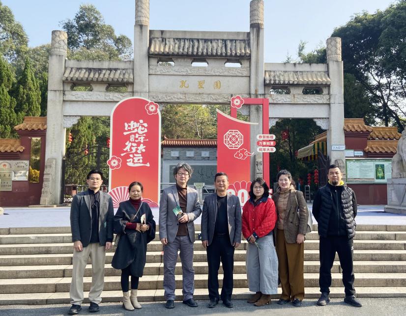 (赖家恩)1月7日,我校suncitygroup太阳新城与佛山三水孔圣园进行跨专业跨工作室联合调研活动,此次活动以校地合作为契机,共谋文化创新发展,标志着双方合作的新篇章正式开启。此次活动由suncitygroup太阳新城方滨副院长带队,视觉传达设计系主任段碧丽、教师赖家恩、数字媒体艺术专业教师彭国文、陈广湛等一行五人参与。佛山仟知行文化科技发展有限公司总经理林鹏、副总经理黎淑贤、孔圣园园长岑燕瑜等企业代表陪同调研。
