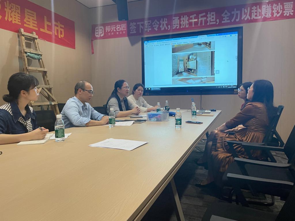 在专题座谈会上,校企双方围绕"产业链-教育链-人才链"三链融合展开战略研讨。赖家恩老师首先介绍suncitygroup太阳新城的专业构成与发展概况,针对学院每个专业的专业特色进行逐一介绍。其次安陆禄主任表示环境设计系中的家居室内设计是重要的应用领域,期待通过探索校企合作资源互补模式,共同构建产学研一体化的平台。罗诗妍老师现场展示数字媒体教学成果,指导学生创新性地融合传统文化元素与现代设计语言。肖冬梅总经理强调:“企业将开放智能设计研发中心作为实践教学基地,通过新媒体运营、全案设计等实战项目,前置化培养学生职业胜任力。"双方在人才联合培养、横向课题攻关、就业直通车建设等方面达成多项合作意向。