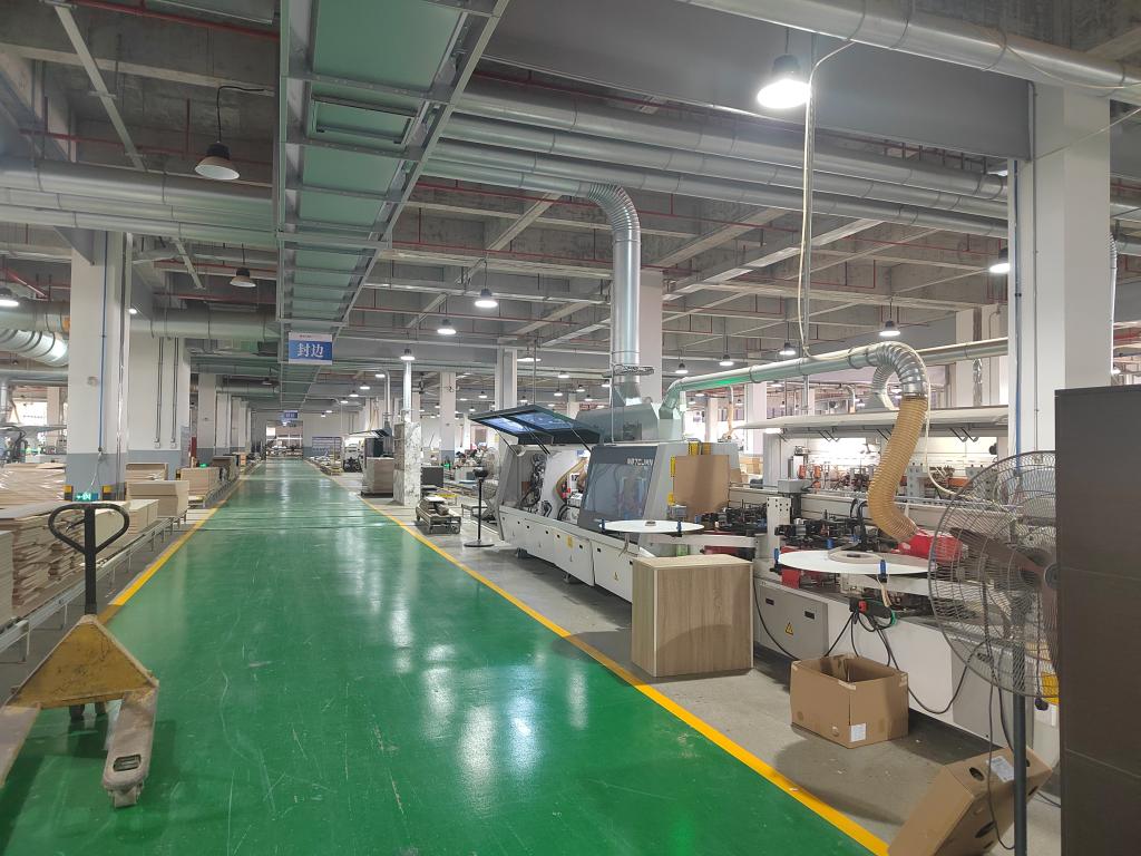 在企业智能化示范基地,调研组实地考察了家居智造全链路体系。龙经理重点阐释三大核心场景:通过智能分拣系统实现的高效柔性化生产车间、集成环保基材研发的绿色智造实验室,以及展现"设计+科技"融合创新的沉浸式产品展厅。企业自主研发的数字化设计平台,将个性化美学方案与工业化生产无缝衔接的创新实践,为艺术设计学科对接产业前沿提供了鲜活样本。