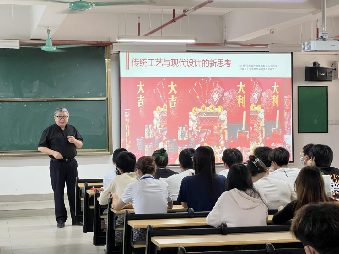 4月20日下午,我院邀请中囯工艺美术学会非物质文化遗产工作委员会副主任、广东省非物质文化遗产保护工作专家委员会委员、高级工艺美术师陈希教授开展题为《传统工艺与现代设计的新思考》的学术讲座。suncitygroup太阳新城院长尚华,辅导员杨茜、江丽霞、黄禹彰,以及21级全体同学现场聆听讲座。