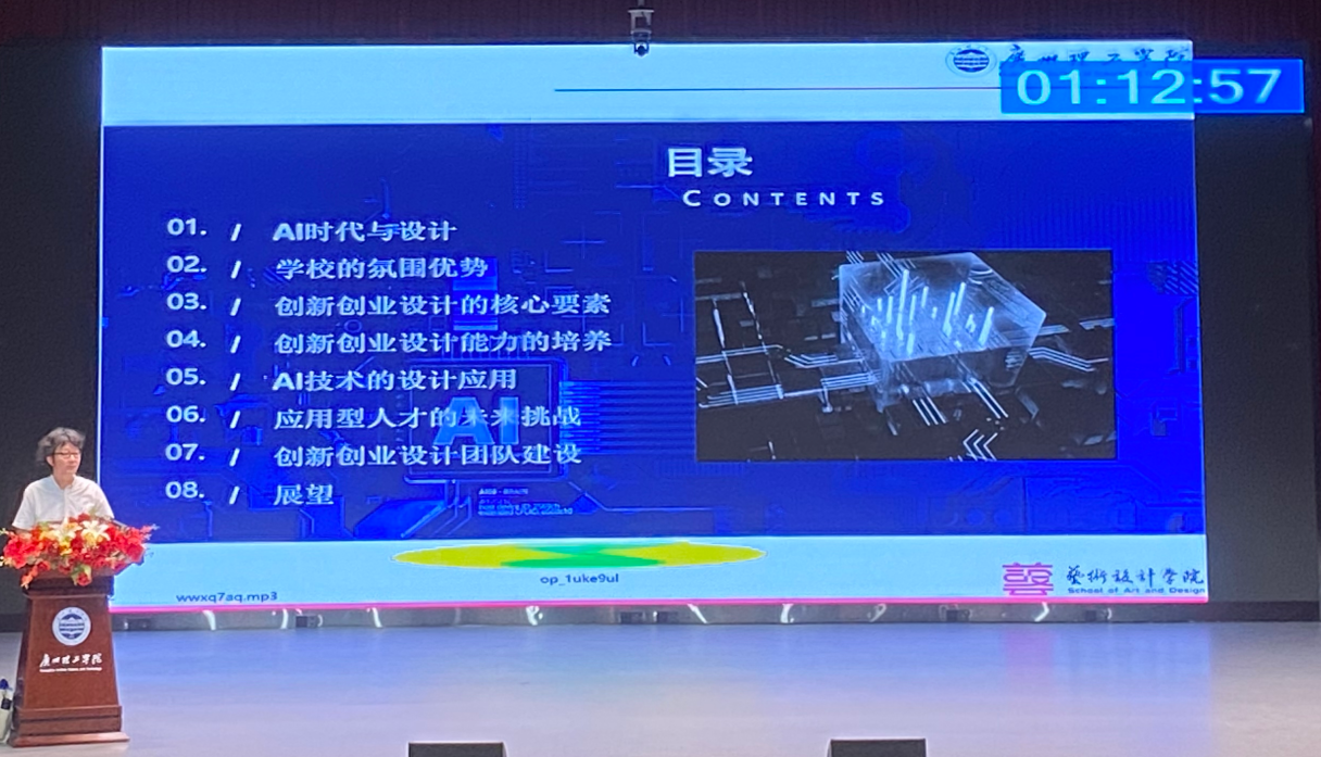 方滨博士通过亲身经历和收集的国内外AI资讯,描绘当今科技发展现状、市场人才需求情况,以及学校如何助力学生在AI时代的创新创业设计活动。包括AI时代的设计需求、学校的科研竞赛优势、创新创业设计的核心要素、创新创业设计能力的培养、AI技术的应用、应用型人才的未来挑战、创新创业团队的建设等方面,深入浅出的介绍了广理的应用型高校创新创业氛围和支撑体系。
