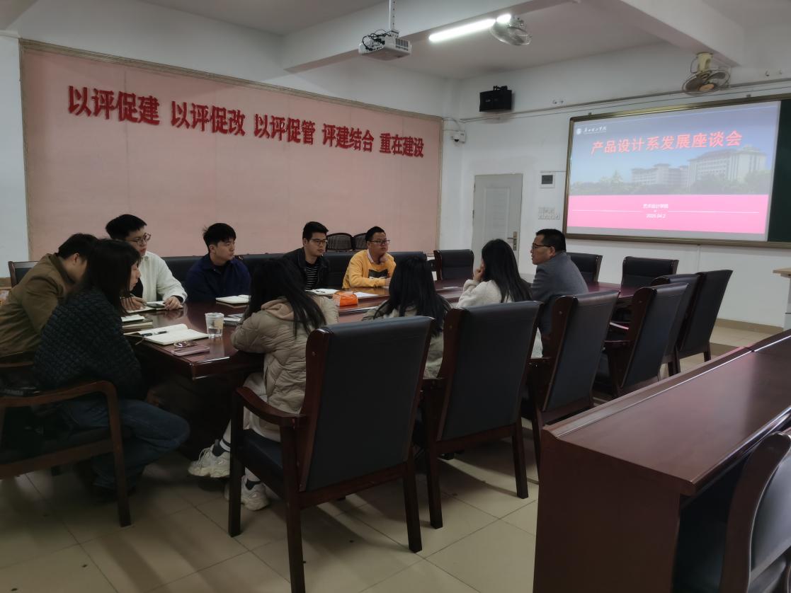 (李林)4月2日上午11时,产品设计系在7栋608会议室召开专业发展座谈会。学院院长刘延华、产品设计系全体教师参会,围绕“深化产教融合,培养应用型设计人才”主题展开深入研讨。