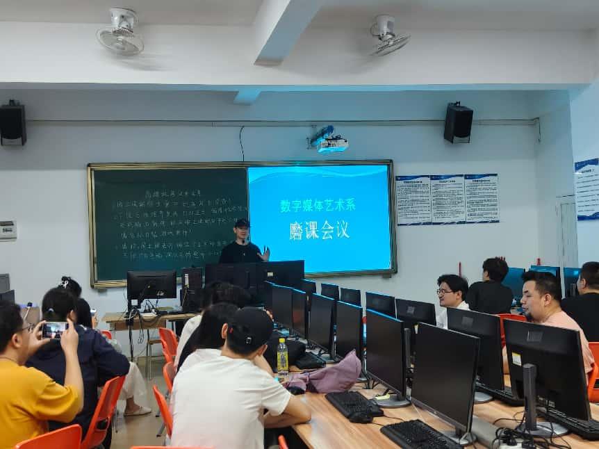 (苏锋)4月24日下午,为了协调评建工作的安排以及系部教学质量的稳步发展,数字媒体艺术系在7-116机房进行教研室第二轮磨课会议,会议的主旨是帮助老师们特别是新入职的年轻教师尽快步入正常教学轨道,积累教学经验,会议由数字媒体系主任苏锋老师主持,数字媒体艺术系全体教师参与了磨课会议。