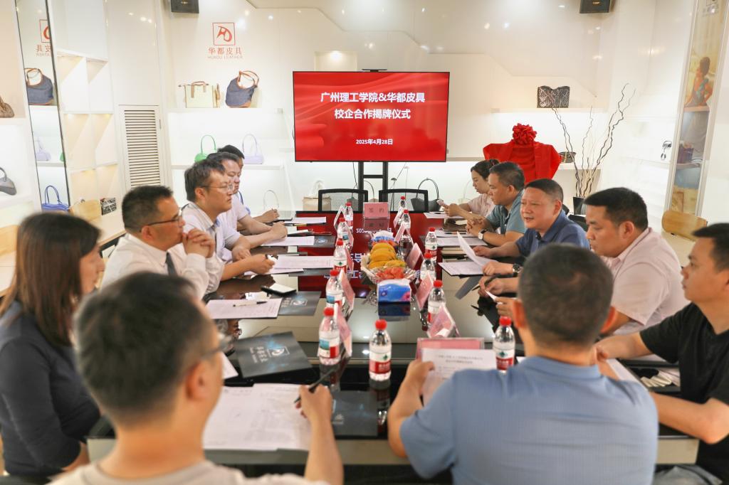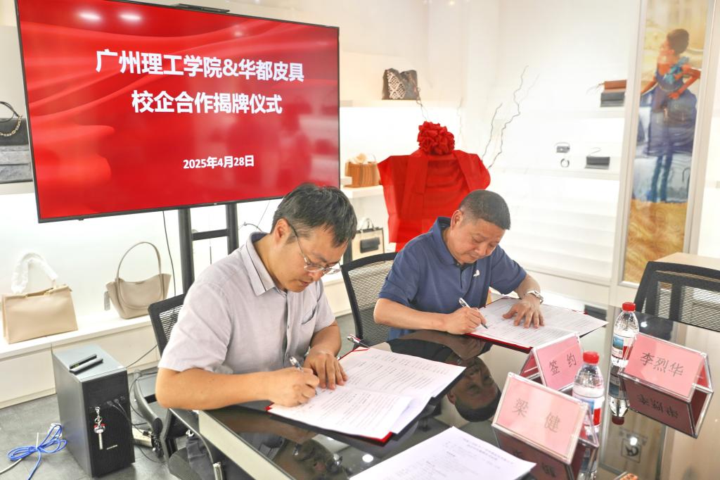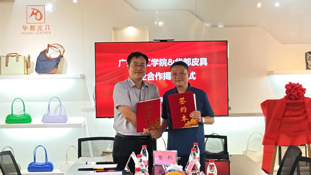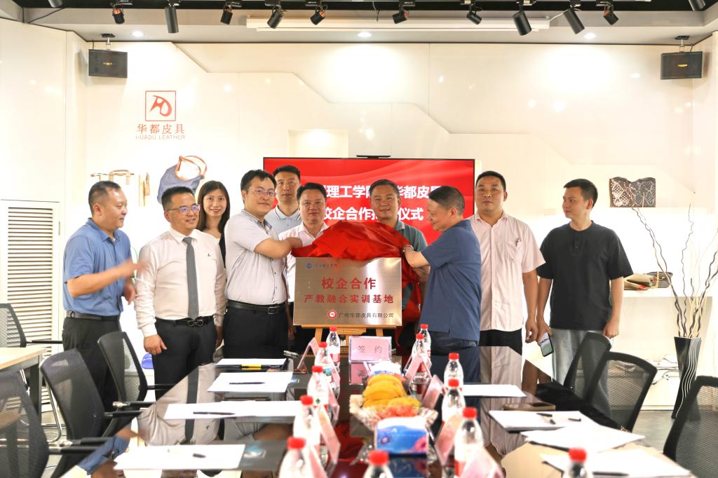 4月28日,学校与广州华都皮具有限公司(简称“华都皮具”)在华都皮具公司举行签约揭牌“广州理工学院校企合作产教融合实训基地”仪式。华都皮具公司董事长许妙天、董事总经理许天畴、副总经理李烈华、品牌项目部总经理邱荣强、广州市白云区皮具产业促进会秘书长杨汉军、白云区均禾街道办事处经济办负责人陈庆权,广州理工学院常务副校长伏焕昌、创新创业学院副院长阴凡、suncitygroup太阳新城常务副院长刘延华、教学副院长梁健、产品设计系主任陈咏妤等领导出席仪式。杨汉军秘书长主持仪式。
