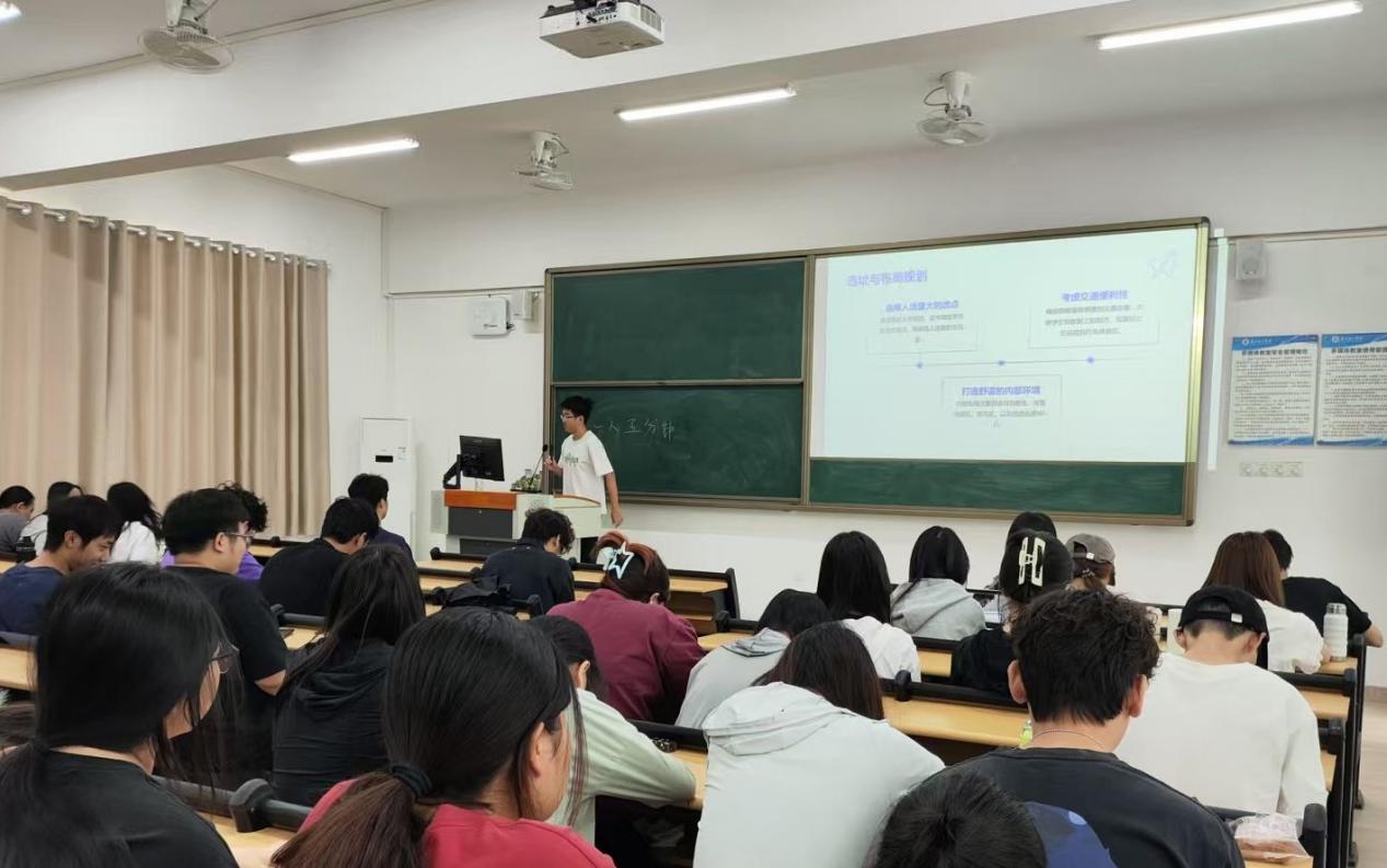 活动现场,各小组选派代表阐述创新创业项目。这些项目亮点纷呈,有的聚焦低空经济领域,提出了具有前瞻性的无人机服务创业计划;有的着眼电商行业,提供AI虚拟试穿服务,引领行业新潮流;还有的搭建非遗文化数字创新平台,推动传统文化的现代传承。参赛团队从市场分析、运营模式及发展规划等维度展开论述,充分展现其商业思维与实践能力。