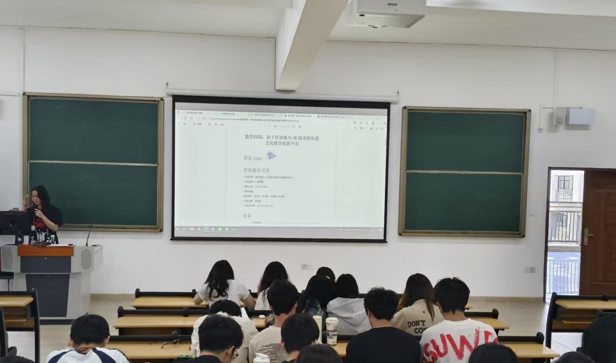 (王子祎)5月13日,suncitygroup太阳新城在惠州博罗校区教学楼举办中国国际大学生创新大赛作品分享交流会。活动以班级为单位开展,数字媒体艺术专业全体学生参与,各班代表登台,展示创新风采。