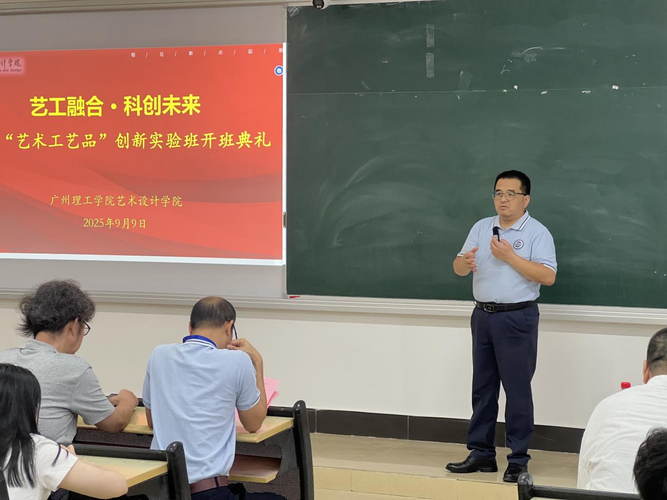 副院长李瑞教授首先宣读了学校成立创新实验班的通知。随后,刘延华常务副院长致辞。他表示,实验班是学院推动产教融合、培养应用型设计人才的重要举措,首批67名同学经过选拔入选。实验班聚焦“时尚皮具设计”“掐丝珐琅工艺”“AI影视创作”“文创激光雕刻”四大方向,以真实项目和企业订单为驱动,构建“基础—融合—实战”三阶培养体系,实行“校内+企业”双导师制,帮助学生实现从创作到市场的全流程锻炼。