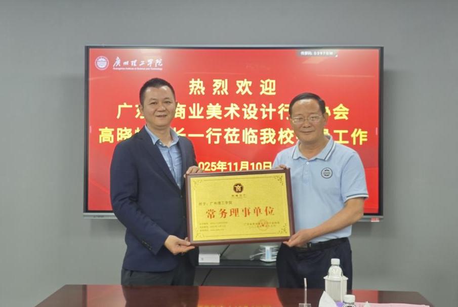 2025年11月10日下午,广州理工学院迎来重要时刻——广东省商业美术设计行业协会授予学校“常务理事单位”。协会会长高晓峰、副会长黄迅、会员部主任黄茵雨一行莅临我校,在suncitygroup太阳新城隆重举行协会常务理事单位授牌仪式。广州理工学院副校长张日新、校长办公室主任黄菲青、suncitygroup太阳新城常务副院长刘延华、副院长方滨、办公室主任唐海春等热情接待并全程参与活动。