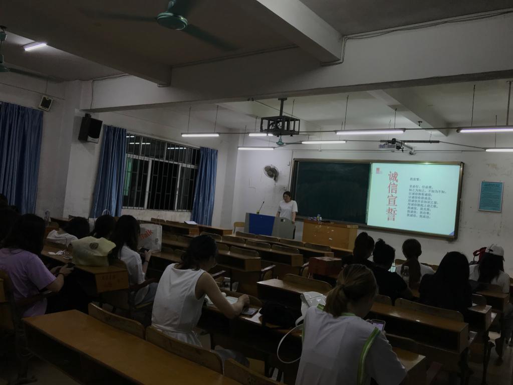 本活动首先由全班同学参与,活动前开展小组讨论,每个小组派一名代表在班里进行介绍。每个小组代表的上台,以“诚信”为切入点,分别阐述了自己小组对诚信的见解。在讨论过程中,学生们踊跃发言,和大家分享了自己的感悟与理解,寻找自身在诚信方面的缺失,内容涉及到了学习、工作、生活等等,并通过讲诚信故事、分享诚信名言等多种方式,使学生理解什么是诚实守信,懂得诚信的重要性,让大家恍然大悟,受益匪浅。也有同学分享了自己的反面事例,他用切身体会告诫大家不要做缺失诚信的事情,要做一个讲诚信的人,一定要坚定自己的信念,坚决抵制诱惑。结尾时,王文远班长总结大家的发言,并鼓励我们自尊自信,做个诚实的人。活动最后由班长给大家宣讲此次班会的主题内容、目的和此次班会的作用,以及诚信在日常生活的重要性。