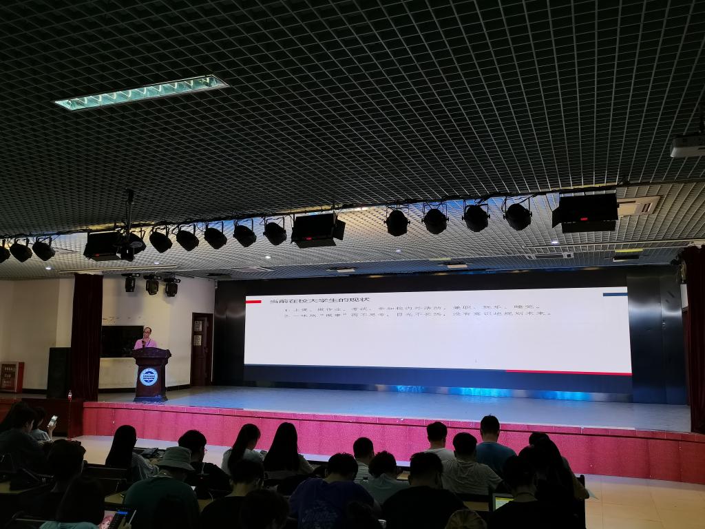 颜冬果老师通过四个方面阐述了学风学纪的问题:大学生与非大学生的区别、大学生的现状、关于大学生的价值观、大学生应具备的能力。