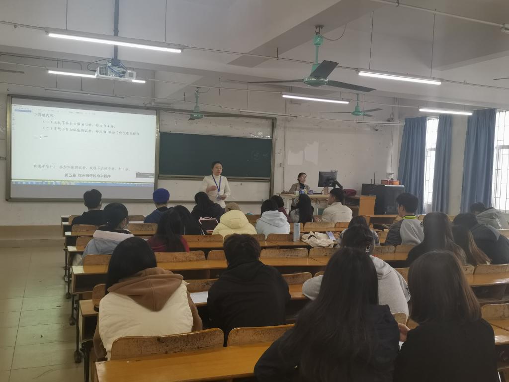12月23日下午,我院在综合楼栋418教室召开2021-2022学年第一学期学生综合素质测评培训会,各班班长参加了培训会,培训会由辅导员杨茜老师主讲,学工组长江丽霞老师主持。