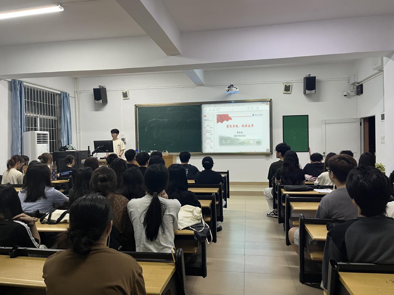 随后,各班组织同学们学习《学生手册》中关于诚信应考的相关章节,强调了在考试期间要携带齐全证件、遵守考试时间参加考试、严禁电子产品进考场等注意事项,申明了《学生手册》中对于考试违纪、作弊行为的具体违规处罚。通过剖析一系列警示教育案例,深入探讨了考试违规行为的常见类型及其可能带来的后果,以增强同学们对考场规则的认识和重视,引导同学们树立正确的考试态度。