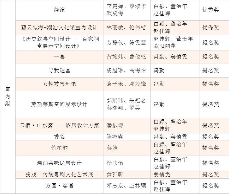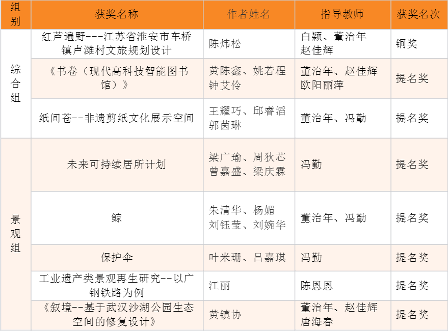 近日,2022学院杯中国室内与环境设计大赛获奖名单揭晓,广州理工学院suncitygroup太阳新城获得组织奖,白颖、董治年、赵佳辉三位教师获得优秀指导教师奖,学生共有21件作品获奖,其中综合组3件,景观组5件,室内组13件。