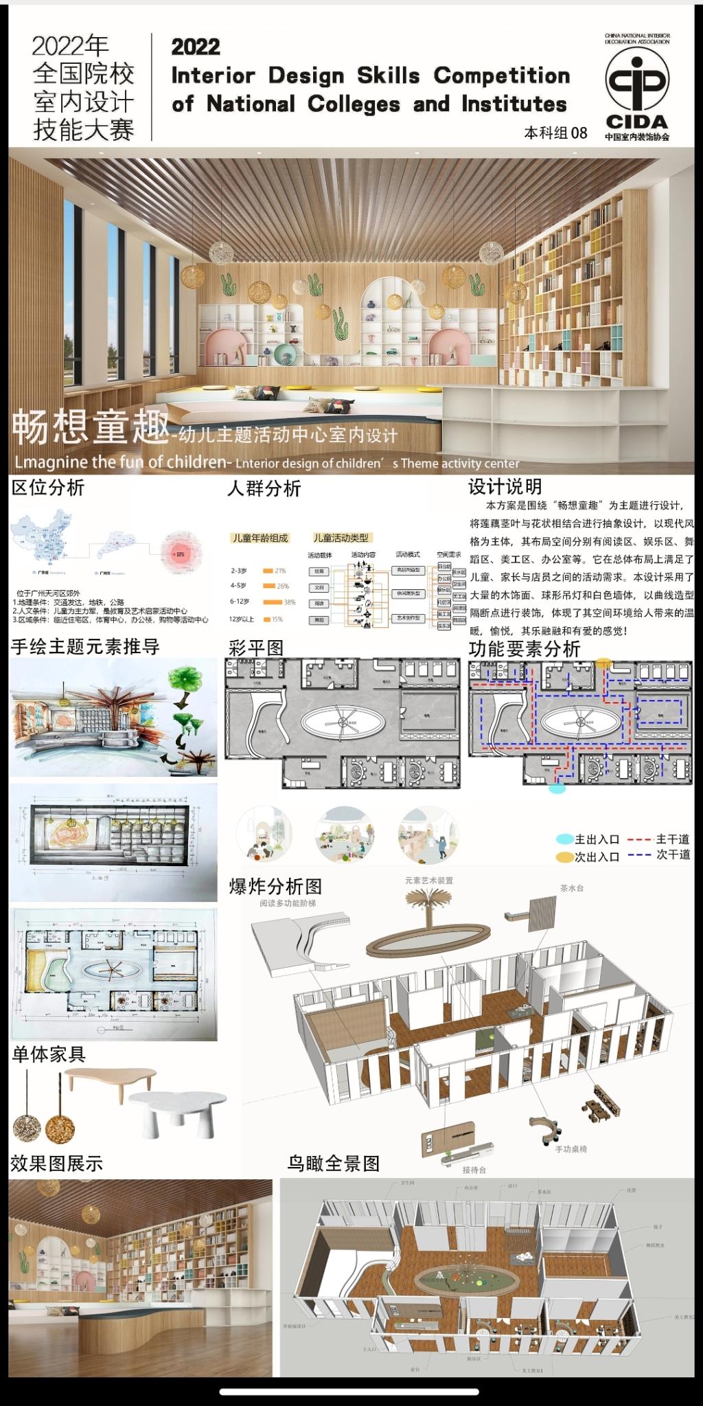 2023年3月26日,中国室内装饰协会主办、教育部职业院校艺术设计类专业教学指导委员会支持,北京电子科技职业学院承办的2022全国院校室内设计技能大赛全国总决赛圆满收官。历时4个多月,来自全国600余所院校的1200多支参赛队伍,经历层层选拔和激烈角逐,共计160余支参赛队入围总决赛。在公平、公正、公开、透明的原则下,根据专家评比,我院赵佳辉、白颖老师指导的学生取得一等奖一项、三等奖两项的优异成绩。