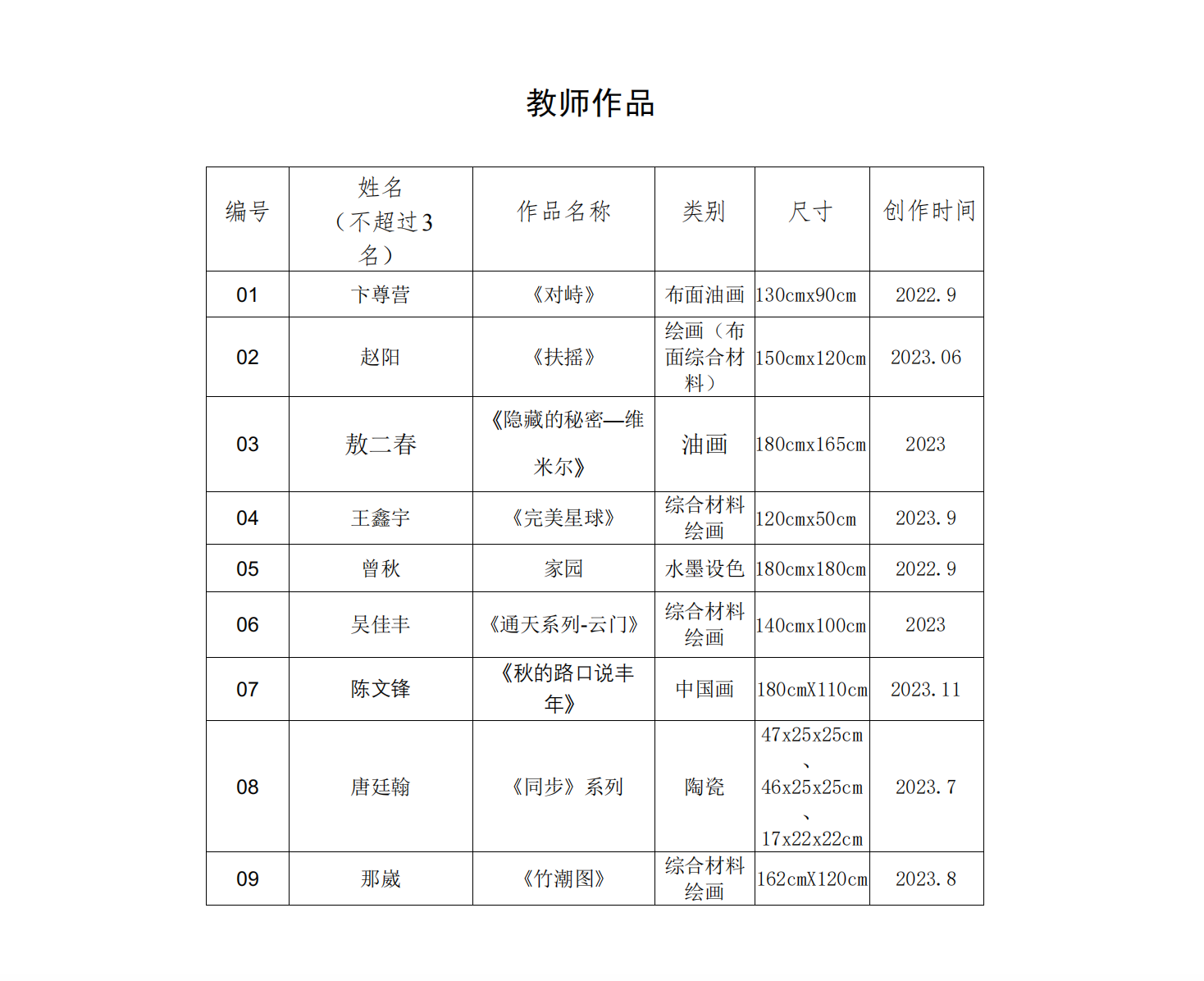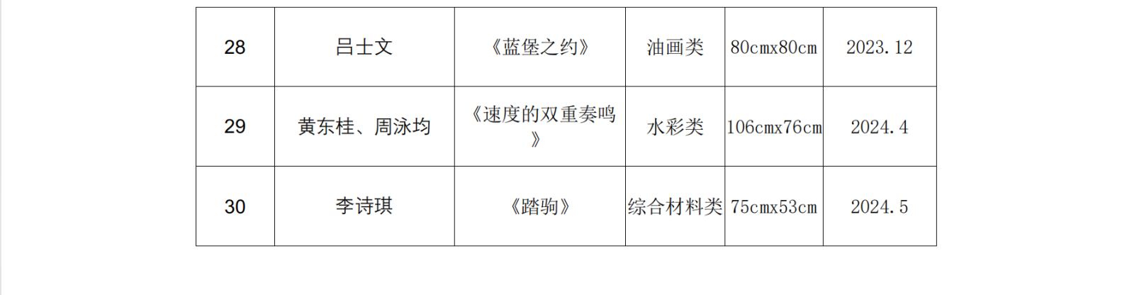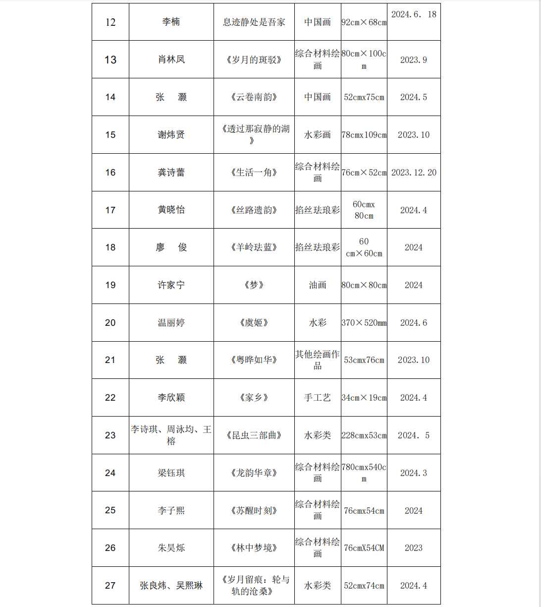 艺术学院送选30件作品名单: