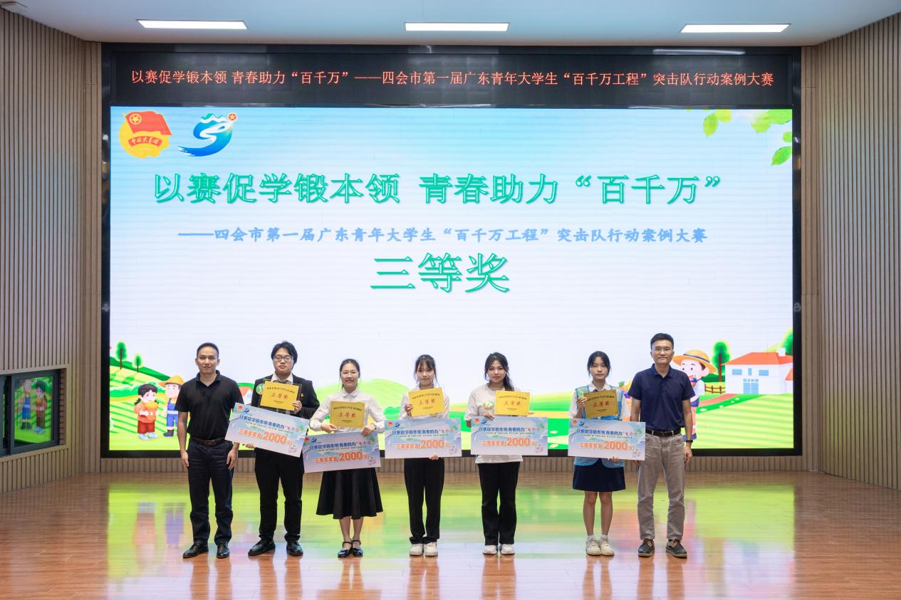 据悉,四会市第一届广东青年大学生“百千万工程”突击队案例大赛旨在通过大学生以赛促干、以赛促学,营造突击队学比赶超的氛围,促进成果转化。大赛吸引了来自不同学校的169支突击队报名参与,经过严格审核与筛选,最终24支突击队脱颖而出,同台竞技。科技创艺实践队凭借精心准备的案例和生动的讲解,赢得了评委和观众的好评,最终荣获三等奖。