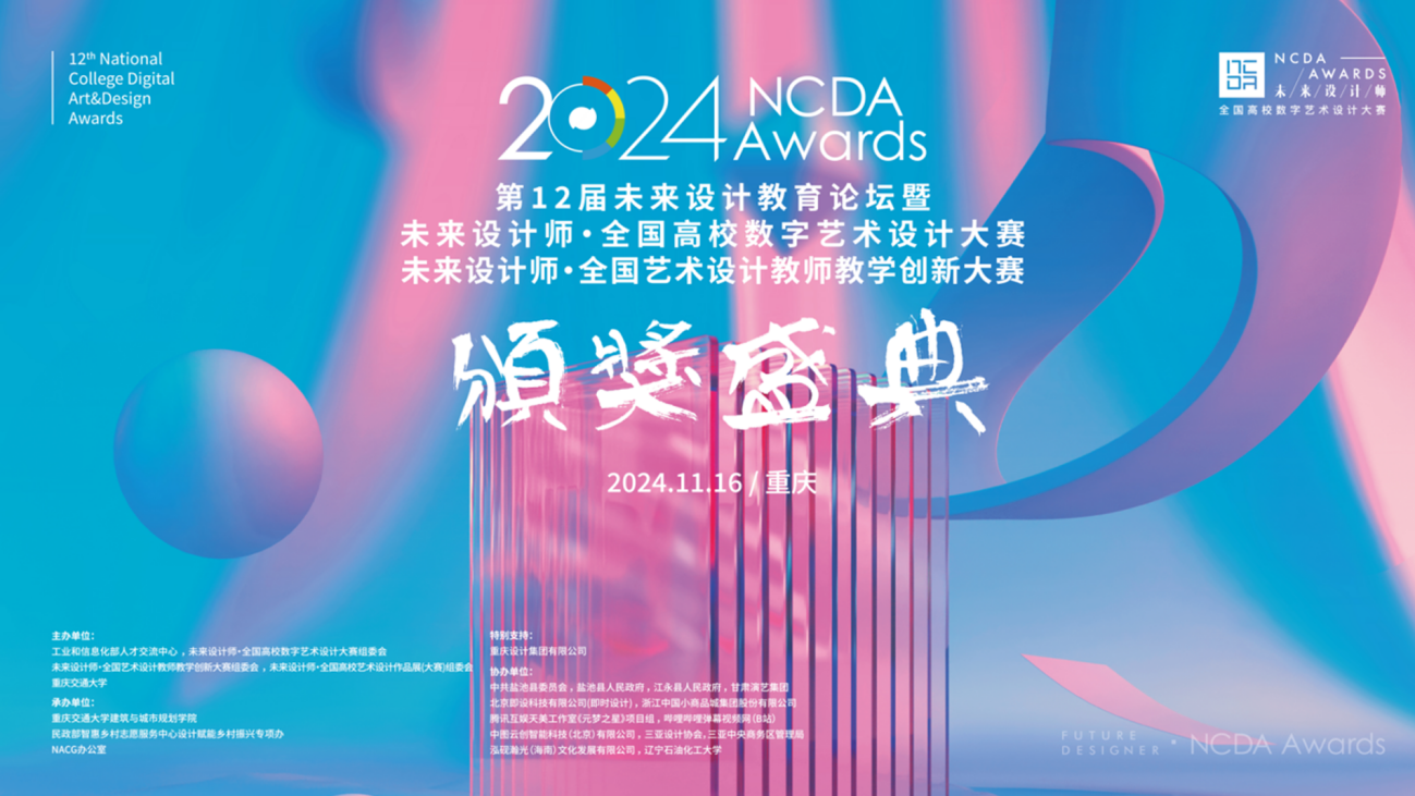 未来设计师·全国高校数字艺术设计大赛(NCDA)是由工信部人才交流中心主办,教育部中国高等教育学会认定,15个省教育厅发文立项,“学习强国”学习平台支持的国家级大学生竞赛。大赛始于2012年,每年举办一届,已连续举办十届,是高校积极参与的重要竞赛之一。本届大赛共有1891所高校参赛,共收到298,763件作品,设立29个省级赛区;985、一流大学参赛率达95.2%,设计学学科评估C-以上高校100%参赛;参赛作品经过校级赛-资格赛-省级初赛-省级决赛-全国总决赛多轮竞赛,分别产生省级赛和全国赛获奖作品。