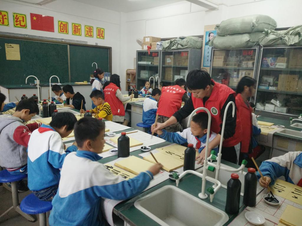 辅导孩子们练习书法