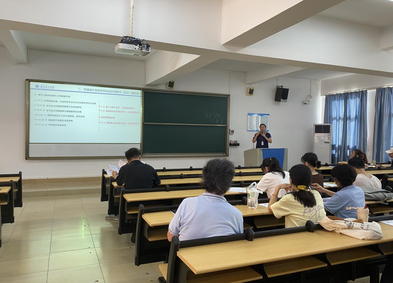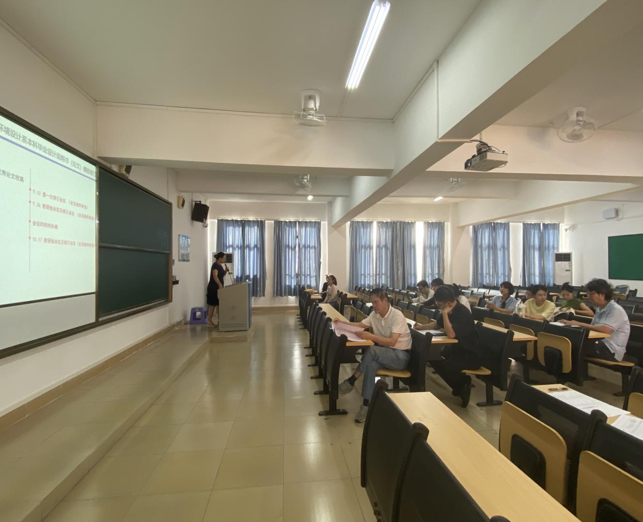 (黄梽睿)9月26日下午,环境设计系在教学楼7栋518室召开了环境设计系第二次教研会议,会议由环境设计系安陆禄老师主持,系内全体教师参加。在会议上,教研室会议主要围绕毕业论文指导和阶段性过程任务、新进教师磨课、及实训实践评价与建设三个方面展开讨论。