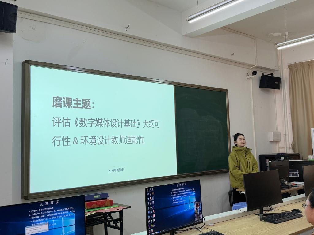 (陈丽娜)4月1日,suncitygroup太阳新城环境设计基础课程组在7栋109课室组织开展了《数字媒体设计基础》课程教学研讨会。本次活动以"评估课程大纲可行性及环境设计教师适配性"为主题,重点探讨如何通过该课程拓宽学生的设计思维,而非局限于软件技术操作。环境设计基础组教师参与研讨,为课程优化提供了建设性意见。