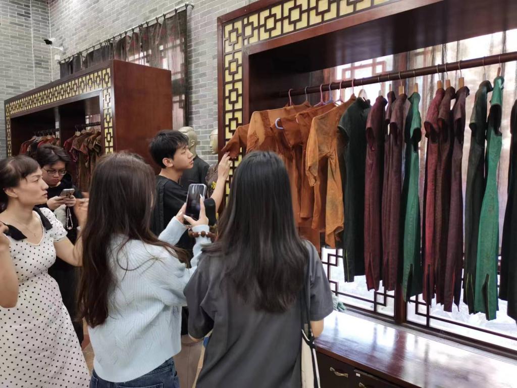 考察的第一周,学生们深入广州和佛山地区,参与了一系列丰富多彩的活动。从黄埔古港的书籍装帧体验,到广东慕尔印刷有限公司的印刷工艺流程学习;从粤猫品牌策划设计公司的全面参观,到白鹅潭艺术中心的艺术感受;从广东省博物馆的历史文化知识汲取,到广州美术学院的学生培养方案和优秀毕业设计作品的分享;再到香云纱博物馆的传统技艺体验,清晖园的岭南园林韵味感受,以及佛山黎婉珍狮头非遗传承基地的醒狮文化了解,学生们的专业素养得到了极大的提升。