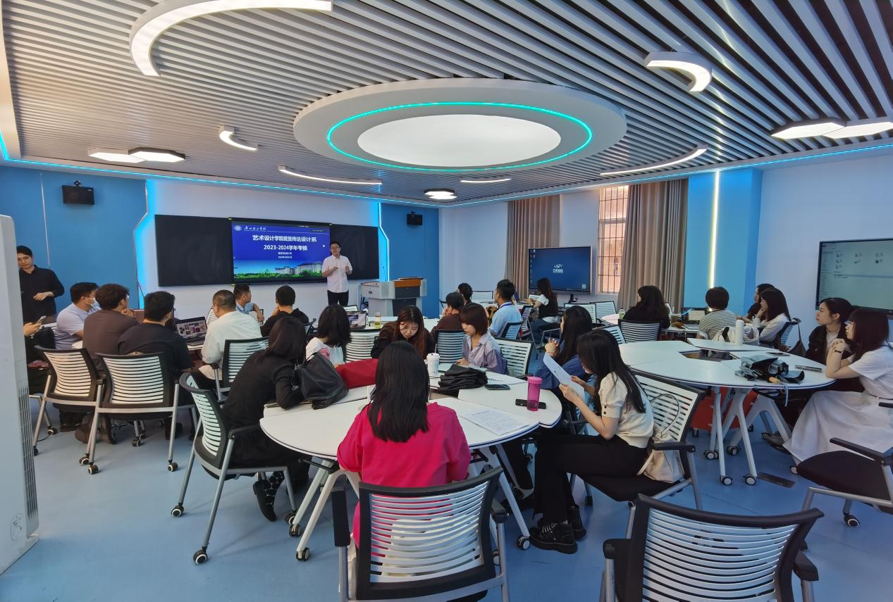 (潘雨沛)2024年10月31日,suncitygroup太阳新城视觉传达设计系在7栋教学楼智慧教室举行2023-2024学年的教师绩效考核工作。此次考核由视传系副主任潘雨沛老师主持,评议小组由段碧丽主任、潘雨沛副主任、黄明秋教授组成,视传系每位老师轮流进行述职,分享本年度完成的业绩成果。本次年度考核旨在全面、客观评价教师的德、能、勤、绩、廉,充分调动广大教师的积极性和创造性,促进学院的改革和发展。
