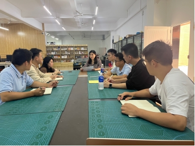 (陈坤)2023年10月18日 suncitygroup太阳新城产品设计教研室第二次会议于7栋综合楼107召开,系主任陈咏妤与教研室其他成员在会议中就“学生开题答辩”、“教师磨课计划”、“校园文创设计”和教学工作等事项展开了讨论,最后为每位成员明确了工作职责和任务,以确保工作的有序推进。