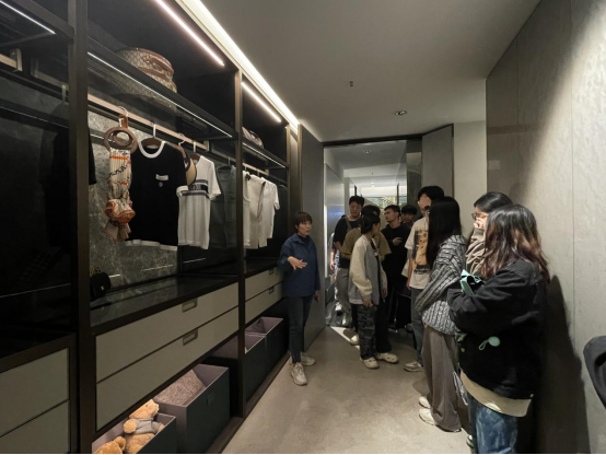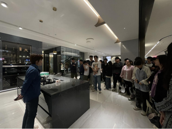 次日,师生团队来到广州黄埔罗浮宫家居中心,针对高端家居定制材料认识和艺术家居现场进行实践教学。首先来到广州威法家居定制公司进行了参观学习。vifa 威法设计,科技生活三大工程美学融于一体,以专注态度和创新精神,不断将产品设计与空间设计做到周致,力高品质精英家庭创造重加美好的家居生活。由威法公司陈总监带领讲解下,参观了威法高端家居空间全新展厅,感受高端定制行业前沿的展厅设计和艺术家具定制产品设计,了解威法家居的品牌理念、发展历程、服务标准以及研发成果等。同学们都兴致勃勃,听的认真,记得仔细,时不时交流互动,实践调研活动现场气氛活跃,同学们受益匪浅。也表示愿意和学院展开校企合作和招聘就业的意向。