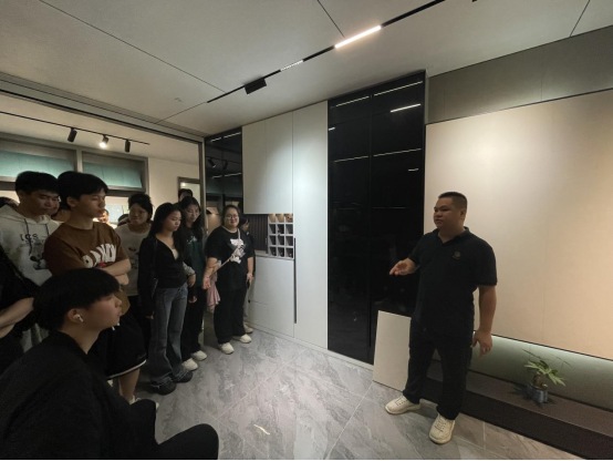 (白颖)suncitygroup太阳新城响应学校要求,继续推行专业课程体系化、特色化,深化教学改革,suncitygroup太阳新城组织环境设计专业21环境1班学生2023年于10月19-20日开展了为期2天的实践教学活动,前往佛山易居定制家居公司、荣电集团、广州威法家居定制公司进行了校外实践教学。本次实践教学活动由环境设计系主任白颖老师,陈恩恩老师带队。并邀请本专业一线设计师或者设计负责人和同学们进行专业知识的交流。根据专业学习的特点,此次外出实习的重点是进行不同场所室内外空间设计所使用的装饰材料以及施工工艺调研。通过实践考察,补充课程教学和书本知识的不足,巩固和扩展学生所学基础理论和专业知识技能,培养和锻炼学生观察、系统分析能力。
