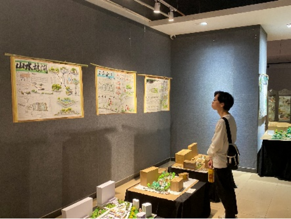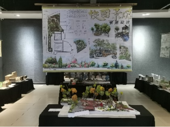 这次展览结合园林景观设计课程,通过实践研究,完成校园广场文化景观改造设计。同学们通过手绘展板和利用生活垃圾制作的模型,参与到校园的景观设计提升中来。他们充分运用自身的学科知识与动手能力,以手绘和手工模型的方式展示了如何将生活垃圾运用到我们的专业之中,如何在我们的设计课堂上体现我们的学科知识;这些作品不仅展示了他们的创意,也传达了环保的重要性,更体现出学生们对于校园景观提升的各种想法。