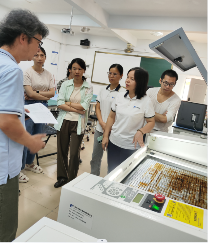 (方滨)在当前技术迅猛发展的背景下,AIGC与数字激光雕刻技术已显著崛起为艺术设计与产品制造领域的关键分支。为积极响应市场需求及行业变革趋势,suncitygroup太阳新城与广州华之尊光电科技有限公司在原有深厚合作基础上,再度深化了双方在AI市场变化形势下的科研教学实训合作。通过高校课程与产业前沿技术的紧密结合,双方共同致力于推动AI数字雕刻技术的创新与优化。7月12日上午,华之尊公司刘艳玲经理、吴小青主管与suncitygroup太阳新城的方滨副院长、环境设计系、产品设计系的十余名骨干教师和实验员朱境老师,共同参与了激光打印模型实训课程的阶段性总结及新技术培训活动,以此进一步提升教学、科研与竞赛质量。