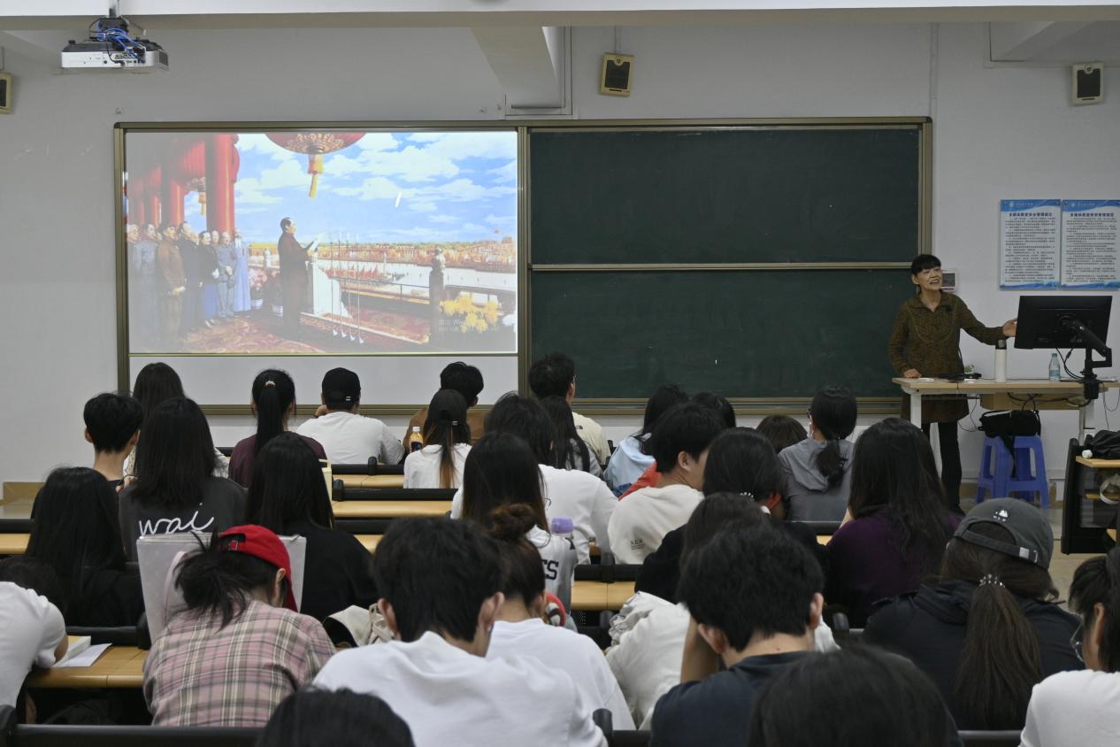 (李德乾)在新中国成立75周年国庆前夕,9月24日下午,suncitygroup太阳新城于7-418教室成功召开2024-2025秋季学期“院长第一课”,课程由suncitygroup太阳新城尚华院长主讲。此次课程以“爱党爱国作品赏析”为主题,旨在通过对经典艺术作品的深入解读,激发学生的爱国情怀和艺术创作灵感。