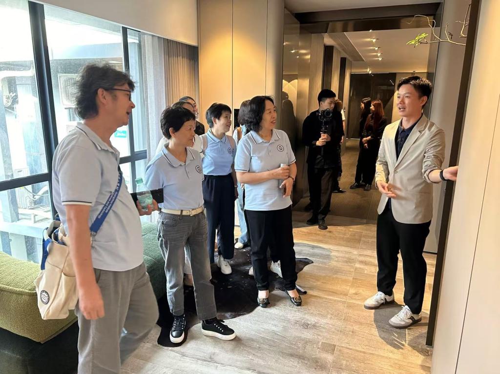 在威法公司,学校考察团一行参观公司展厅,亲身感受解公司最新的设计成果。在随后的交流会上,双方就家具行业发展趋势、教学实践、学生培养及就业等议题展开深入的探讨和交流。
