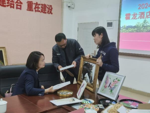 霍龙酒店总经理权华和总经理黄惠娟对会上所展示的包装等文创产品设计给予了高度评价,认为作品“唯美、实用、接地气,具有很高的落地性”。权华总经理夸赞包装设计作品很好,超出了想象并可以马上批量生产;黄惠娟总经理对掐丝珐琅彩、彩玻璃艺术表达赞扬,希望霍山风景区、霍龙酒店与suncitygroup太阳新城在今后加强合作,将文创产品包装、掐丝珐琅彩、彩玻璃艺术设计成为酒店伴手礼,帮助酒店宣传文化理念,提升品牌形象。