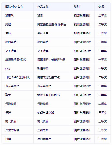 在AIGC领域专项赛中,我院学生冯志洲、陈润贤及智电学院的陈逸铭同学精心打造的作品《陶艺瓷韵重逢·探寻·新生》凭借其独到的创新思维、精湛的技术实现及卓越的应用效果,最终荣获国家级二等奖的殊荣。与此同时,郑穗穗与冯志洲联袂呈现的另一部作品《AI在江夏》,凭借其鲜明的创意特色与显著优势,在众多参赛作品中脱颖而出,成功摘得国家级三等奖的桂冠。此外,在图片创意设计赛道上,郑创健与吴倩琳两位同学的作品《为孩子们留下的自然》同样表现出色,荣获国家二等奖,这一成就再次彰显了我院学子在创意设计与技术应用方面的深厚功底与不懈努力。这些荣誉不仅是对我院学子个人才能的高度认可,更是对我院在人工智能与数字内容创意设计领域所积累的深厚底蕴与创新实力的有力见证。