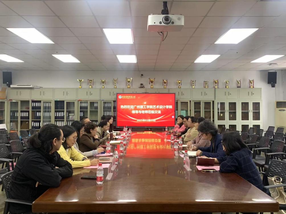 (赵佳辉)在艺术与科技深度融合的时代背景下,为进一步推进友校深度交流,深化友校专业领域合作,实验室建设等专业学习,2025年3月5日上午,suncitygroup太阳新城尚华院长带领方滨副院长、视觉传达设计专业系主任段碧丽、环境设计专业系主任安陆禄、实验室主任朱镜、科研秘书赵佳辉等老师,赴广东技术师范大学美术学院开展参访研学交流活动。广东技术师范大学美术学院的刘子川院长,吴振全副院长、陈静敏副院长,视觉传达设计专业系主任窦潇、视觉传达设计专业负责人罗樾,环境设计专业系主任周峻岭,环境设计专业陈怡,实验室主任杨文超等老师热情接待,并专门召开了专题座谈会。