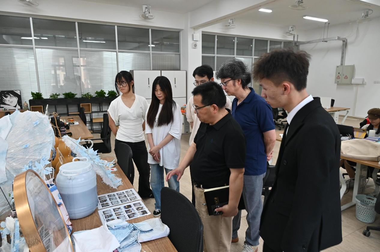 在考察过程中,刘延华常务副院长和方滨副院长实地观摩了工作室的阶段性成果,并对工作室在艺术设计领域的探索与实践给予了高度评价。刘延华常务副院长在观摩过程中强调,艺术设计的价值在于回应时代需求,工作室应致力于成为连接校园与社会的桥梁,让学生在解决真实问题的过程中提升专业素养,培养“有温度、有担当”的设计思维。他指出,艺术设计不仅是技术与审美的结合,更是对社会需求的深刻洞察与创新回应。
